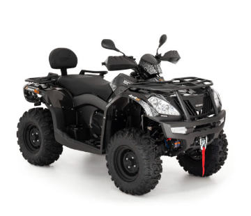 Équipé d'un treuil, d'un porte-bagage avant et arrière, il est fait pour recevoir de la très grosse bagagerie. Il possède également un attelage avec la prise remorque.