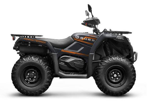 Le 450 Terrox est un quad idéal pour les amateurs de loisirs et les professionnels qui recherchent un véhicule performant, durable, et polyvalent. Il vous accompagnera dans toutes vos aventures hors-piste comme au quotidien pour vous assister au travail.
