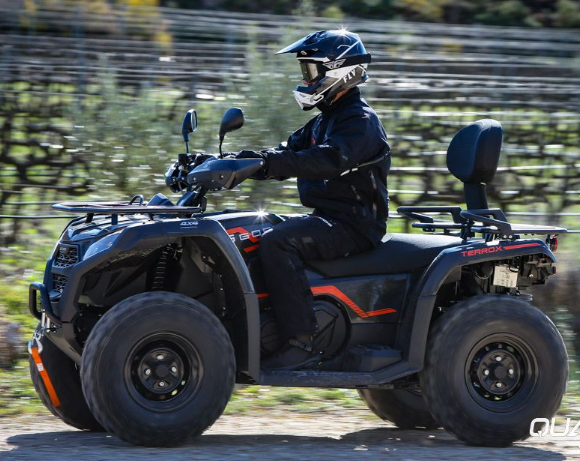 Le 520 Terrox est un quad idéal pour les amateurs de loisirs et les professionnels qui recherchent un véhicule performant, durable, et polyvalent. Il vous accompagnera dans toutes vos aventures hors-piste comme au quotidien pour vous assister au travail.