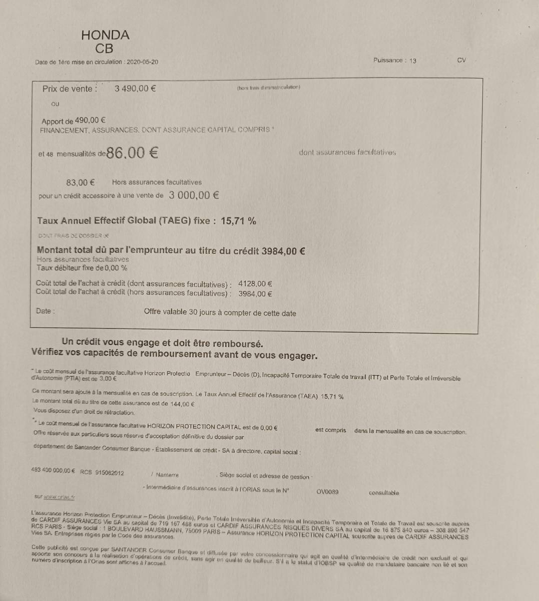 *après acception du financement, viaxel ou Santander Consumer Banque