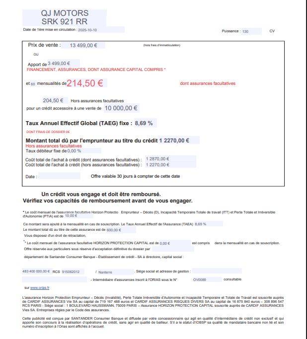 *après acception du financement, viaxel ou Santander Consumer Banque