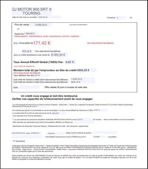 QJ MOTOR SRT 900 SX TOURING pour 171.42€ par mois
