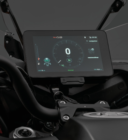 Pour les longs trajets, la SRT 600 SX Touring est équipée de série d'une bagagerie en aluminium comprenant un top case de 45 litres, une valise droite de 30 litres et une valise gauche de 37 litres, offrant un volume total de 112 litres. Le tableau de bord est doté d'un écran TFT de 7 pouces affichant des informations essentielles telles que l'indicateur de rapport engagé, la pression des pneus et le compte-tours. Les commandes rétroéclairées et les prises USB A et USB C ajoutent à la commodité, tandis que la connectivité Bluetooth permet la navigation et la réception de notifications. Un contrôle de traction est également intégré pour une sécurité renforcée.