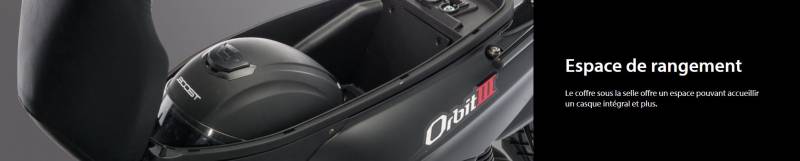 L'Orbit III affiche un design simple et soigné : grand optique, face avant, clignotants intégrés, un coffre spacieux pouvant accueillir un casque intégral, un disque avant Wave de 226 mm pour un freinage optimisé.